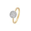 The rings is a cluster of 4 Round Diamonds to make the Shape of a Cushion Shape solitaire Ring.